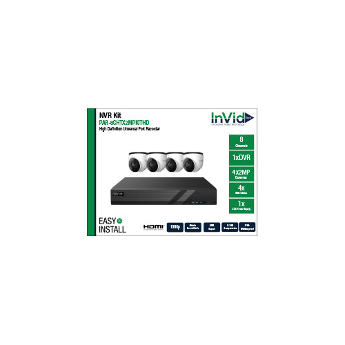 InVid Tech PAR-8CHTX2MPKITHD/2TB (1) 8CH DVR, (4) 2 Megapixel Cameras, (4) Plug and Play cables, (1) Power Supply, 2TB