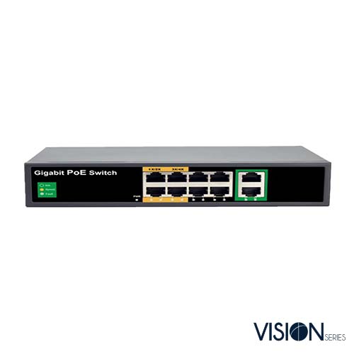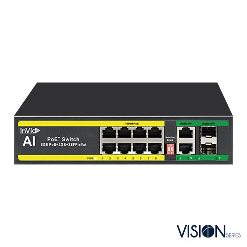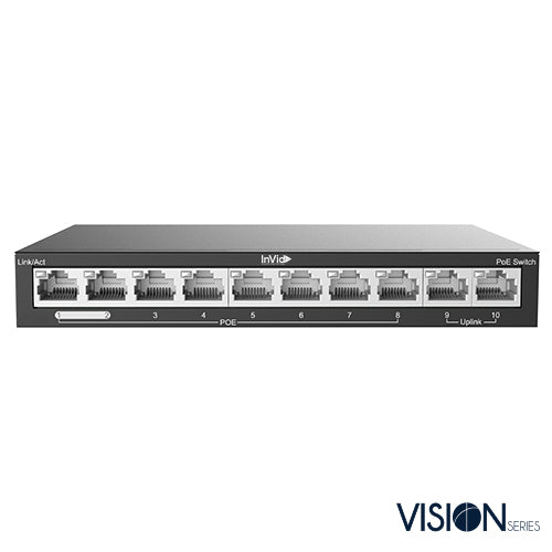 View full detailsInVid Tech VIS-LRPOE8-2AN 8-Port PoE Switch, 88W, UL Listed, With 2 Uplink Ports, 100 MBPS Ports