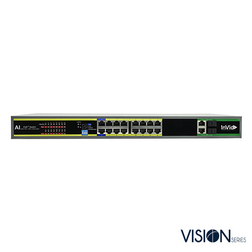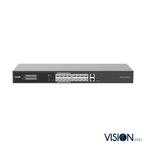 View full detailsInVid Tech VIS-LRPOE16-2AN 16-Port PoE Switch, 1X SFP, 225W, UL Listed, With 2 Uplink Gig Ports, 100 MBPS Ports