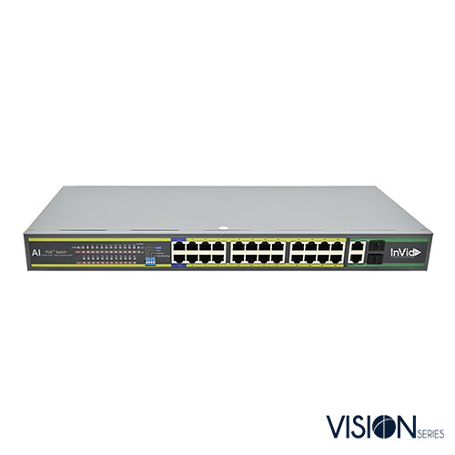 View full detailsInVid Tech VIS-LRPOE24-2AN 24-Port PoE Switch, 1X SFP, 370W, UL Listed, With 2 Uplink Gig Ports, 100 MBPS Ports