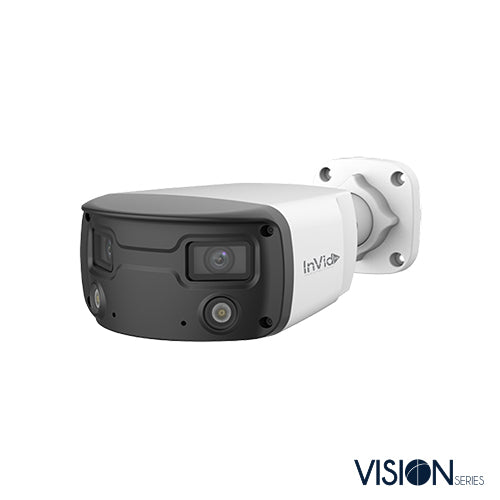 InVid Tech VIS-P8MULTI180-WL 8 Megapixel IP Plug & Play Outdoor Bullet, 180° Panoramic View with 2 Fixed Lenses, WDR, White Light, Built-in Mic/Speaker, SD Card Slot, 12VDC/PoE