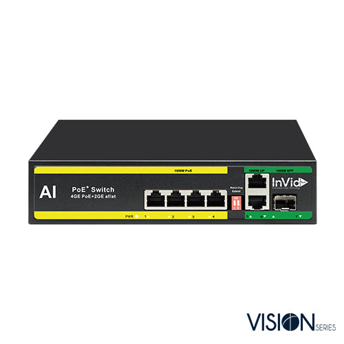 View full detailsInVid Tech VIS-POE4-1FG 4 Port PoE Switch with 1 Up-link Ports. Full Gigabit