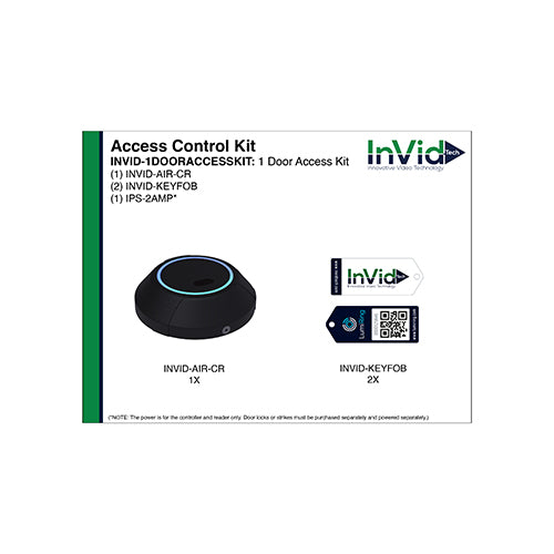 View full detailsInVid Tech INVID-1DOORACCESSKIT 1 - INVID-AIR-CR, 2 - INVID-KEYFOB, 1 - IPS-2AMP (NOTE: The power is for the controller and reader only. Door locks or strikes must be purchased separately and powered separately.)