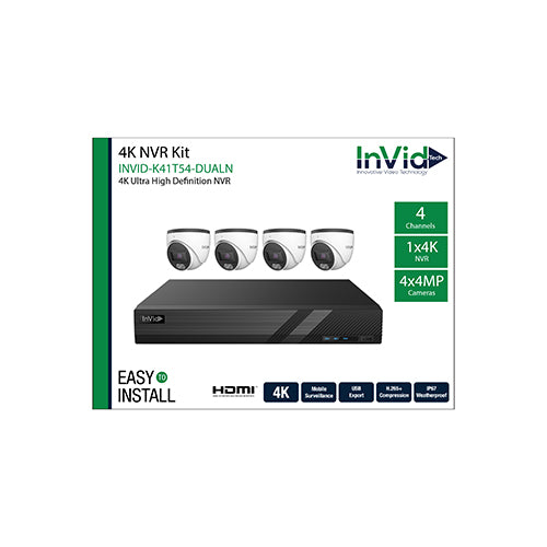 View full detailsInVid Tech INVID-K41T54-DUAL (4) 4-Megapixel Turret Cameras with (1) 4 Channel NVR Bundle, 1TB Drive