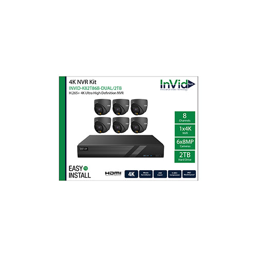 View full detailsInVid Tech INVID-K82T86-DUAL (6) 8-Megapixel Turret Cameras with (1) 8 Channel NVR Bundle, 2TB Drive