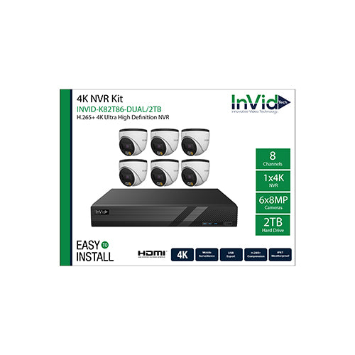View full detailsInVid Tech INVID-K82T66-DUAL (6) 6-Megapixel Turret Cameras with (1) 8 Channel NVR Bundle, 2TB Drive