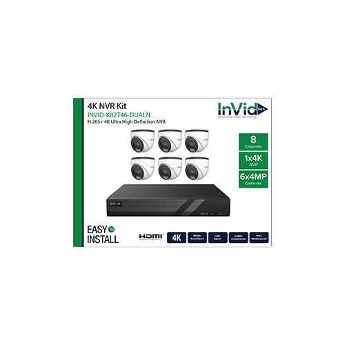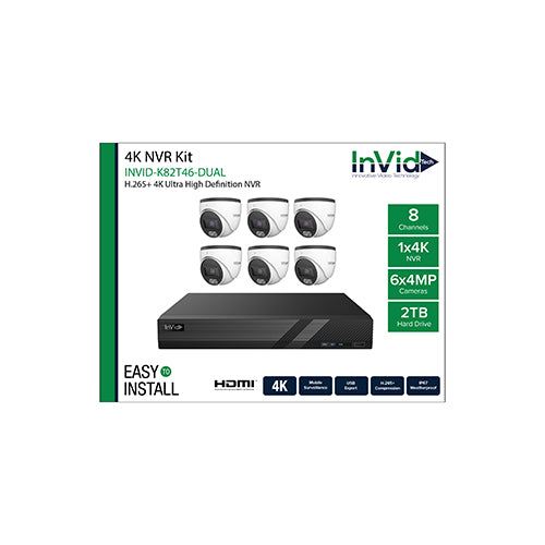 View full detailsInVid Tech INVID-K82T46-DUAL (6) 4-Megapixel Turret Cameras with (1) 8 Channel NVR Bundle, 2TB Drive